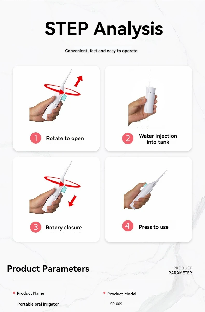 Vilico Irrigateur Buccal Haute Pression Portable Eau Propre Fil Dentaire Manuel