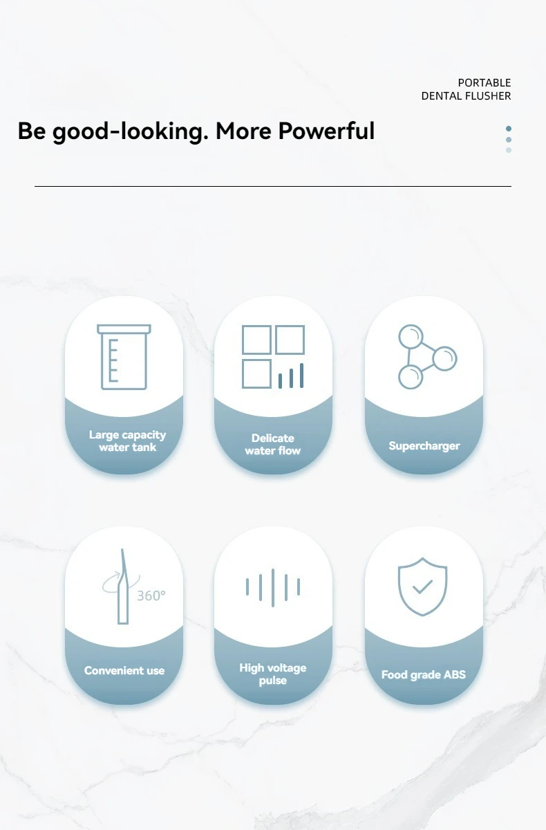 - Haute pression: Nettoyage en profondeur des dents et des espaces interdentaires pour une hygiène buccale supérieure.